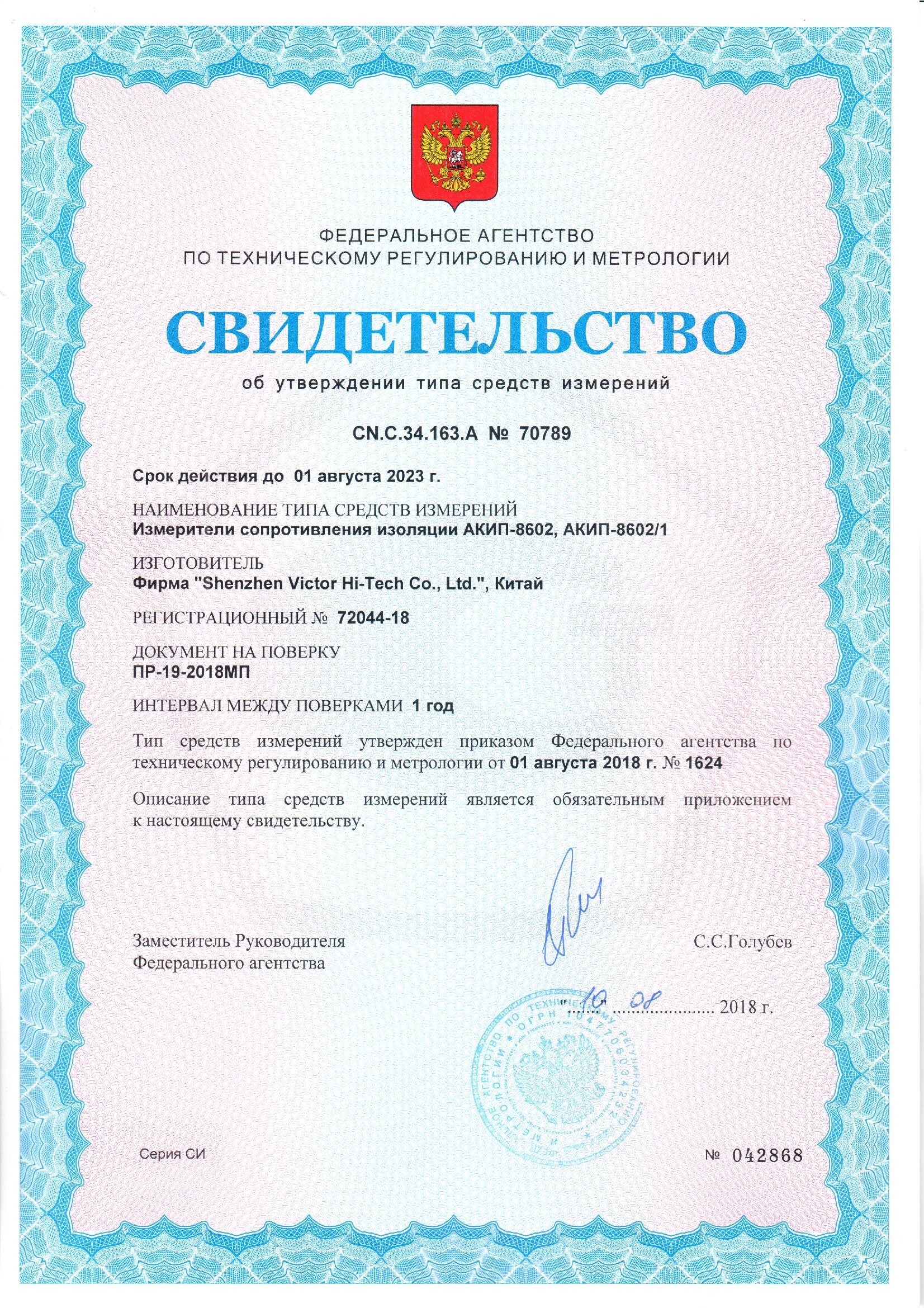 | 1. | Измеритель сопротивления изоляции АКИП-8602/1 | 1 |