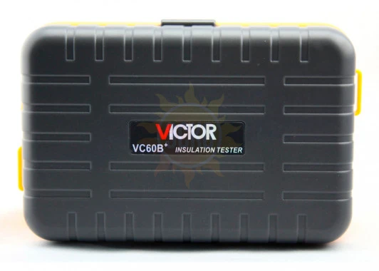 Магаомметр Victor VC60B+ имеет конвертер постоянного напряжения с низким энергопотреблением и высоким КПД преобразования постоянного напряжения 9 В в постоянное напряжение 250 В/500 В/1000 В. Наличие АЦП с двойным интегрированием для измерения сопротивления изоляции, широкий диапазон измерения, наличие подсветки ЖК-дисплея и функция автоматического выключения питания обеспечивают простоту использования прибора. Данный портативный прибор имеет элегантный вид и превосходное качество изготовления, надежен и стабилен в работе, а наличие шейного ремня освобождает для работы обе руки. Victor VC60B+ прекрасно подходит для проверки сопротивления изоляции в электротехнике, в кабельных хозяйствах, в электрическом и механическом оборудовании, в телекоммуникационном оборудовании и системах поставки электроэнергии.