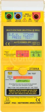 Многофункциональный анализатор электрических цепей 2726 NA: Измерение напряжения «фаза-нейтраль» и «фаза-земля» без нагрузки; Измерение полного сопротивления цепи «фаза-нейтраль» и «фаза-земля» без отключения источника напряжения; Измерение сопротивления шины «фаза», включающее реактивное сопротивление источника напряжения; Измерение сопротивления шины «нейтраль»; Измерение сопротивления шины заземления, учитывающее качество контактных соединений; Вычисление ожидаемого тока короткого замыкания в цепи «фаза-нейтраль» и «фаза-земля»; Сохранение результатов измерения в памяти прибора; Защита ограничительного резистора от перегрева; Индикация правильности подключения измерительных проводов; Управление одной многофункциональной кнопкой; Встроенный микропроцессор; Батарейное питание; Низкое энергопотребление за счет использование элементов КМОП; Индикатор состояния внутренних источников питания; Автоматическое отключение питания; Место для хранения соединительных проводов; Малогабаритный; Масса 0.86 кг.