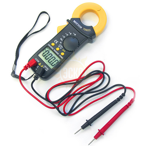 МЕГЕОН 70023 относится к новой линейке компактных многофункциональных измерительных приборов, который сочетает в себе: автоматическое переключение диапазонов измерений, токовые клещи для измерения переменного и постоянного тока и мультиметр измеряющий переменное и постоянное напряжение, сопротивление, ёмкость, частоту, скважность, температуру, кроме этого есть функция проверки на обрыв (прозвонка) и диодный тест.