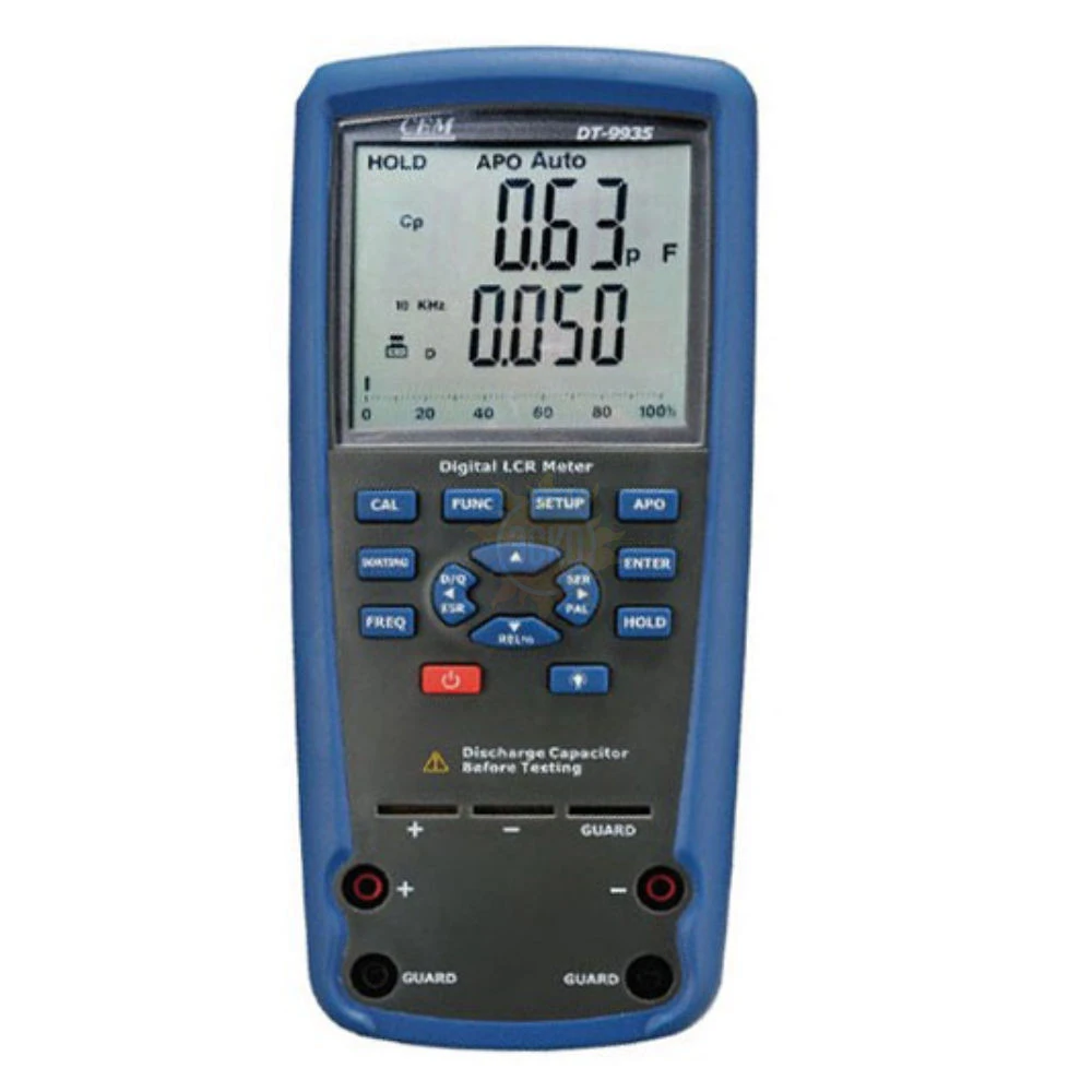 Двухэкранный мультиметр CEM DT-9935 — профессиональный цифровой прибор для измерения комплексных параметров электрической цепи с переменной частотой. В список основных величин, которые можно определить с его помощью, входят как основные параметры — индуктивность, ёмкость, сопротивление — так и коэффициент затухания, тангенс угла диэлектрических потерь и другие параметры.
