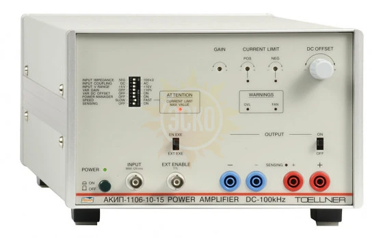 | Особенности | 4-х квадрантный режим (функционирует как и источник U/ I, и как электронная нагрузка). Для формирования произвольной формы используется внешний генератор (источник питания работает, как усилитель). |
