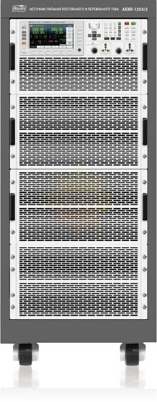 | Особенности | Работа в однофазном или трехфазном режиме. Широкий диапазон установки выходных параметров (напряжение, частота, фазовый угол). Дискретная установка выходных параметров с шагом от 0,01 В. Низкий коэффициент гармоник (0,5%). Одновременная индикация - напряжение, частота, ток, полная и активная мощность, коэффициент мощности. Выход на передней и задней панели. Функция диммера (регулировка скважности). ПО для моделирования импульсов, провалов напряжения и других нарушений в сети электропитания. |