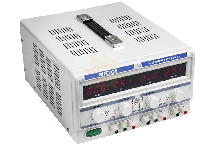 МЕГЕОН 32302 - это компактный, высокоточный, трёхканальный источник питания. Содержит два независимых регулируемых источника питания 0…30 В с током нагрузки 0…2 А и фиксированный источник 5 В и током нагрузки до 3 А, предусмотрена возможность разных схем включения двух источников. Во всех каналах источника реализовано: термокомпенсация, компенсация по току, подавление пульсаций и высокоэффективная защита от перегрузки и короткого замыкания.