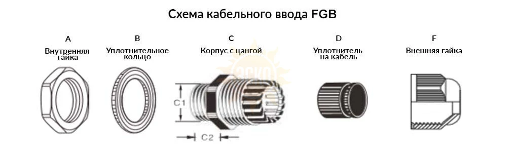 | Маркировка | Резьба | Диам. кабеля | C1 | C2 | Шестигр. A/F | Упаковка |