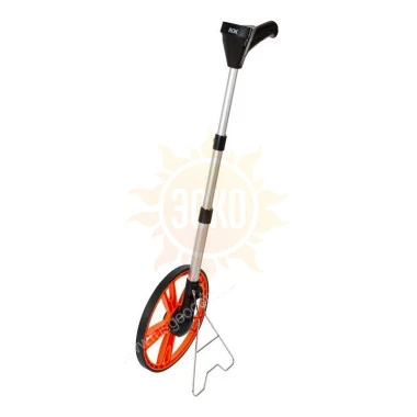 Дорожное колесо крепится на телескопической рукоятке. Выдвижная конструкция дает возможность отрегулировать рукоять по высоте для удобного перемещения курвиметра RGK Q318. В сложенном состоянии прибор имеет компактные размеры и легко помещается в багажник. В нижней части закреплена подножка для удержания колеса в вертикальном состоянии неподвижно.