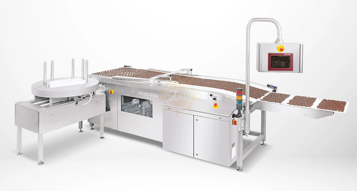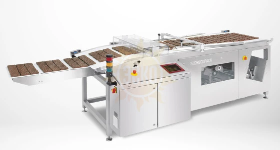 Chocopack C/CR — это успешная система взятия для покрытых и отложенных пралине и барных продуктов. Продукты аккуратно размещаются на пластиковых подносах.