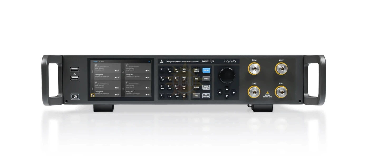 | Особенности | Генератор сигналов высокочастотный, четырехканальный, с фазокогерентным режимом работы. Независимое управление каналами - частота, амплитуда и фаза каждого канала могут регулироваться независимо. Поддержка синхронизации между каналами в пределах одного прибора и синхронизации по фазе между каналами нескольких приборов. Программные опции - генератор пачек импульсов и импульсная модуляция и генератор импульсов. Вход, выход сигнала опорной частоты. Фазовый шум < -136 дБн/Гц (отстройка на 10 кГц от несущей 1 ГГц). |