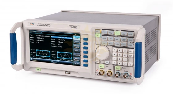 | Особенности | Прямой цифровой синтез (DDS), дискретизация до 1,2 ГГц. Режим формирования сигнала произвольной формы с дискретизацией до 200 МГц, память 32 МБ. Встроенные сигналы специальной формы (165 видов). Формирование выходного сигнала путем задания гармоник. |