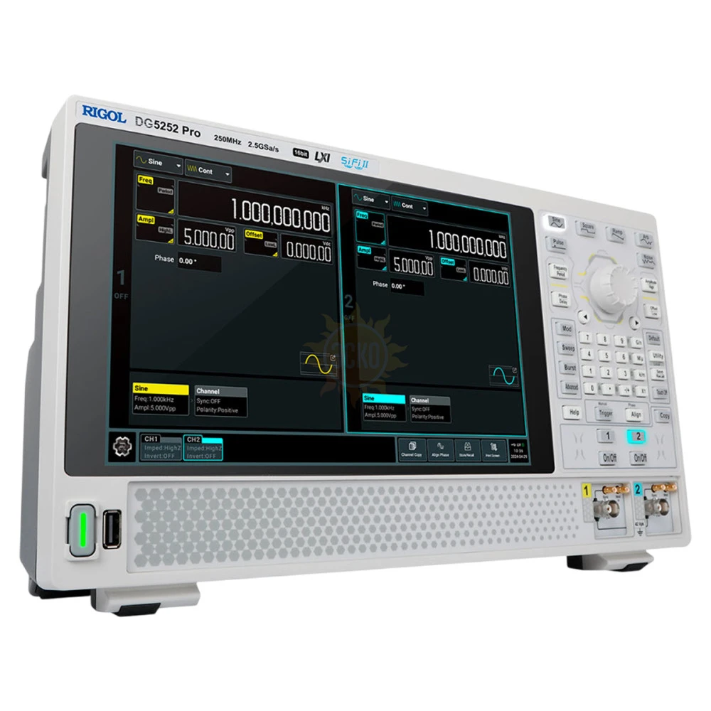 Генератор сигналов произвольной формы RIGOL DG5358 Pro – высокопроизводительный прибор с сенсорным экраном и полосой пропускания 350 МГц, который работает на основе технологии Signal Fidelity второй генерации, обеспечивая частоту семплирования до 2,5 Гвыб/с, при 16-битном вертикальном разрешении и глубине памяти до 128M на канал. Реализуя широкий перечень стандартных и опциональных режимов, прибор способен удовлетворить самые высокие требования к целостности и точности сложных сигналов.