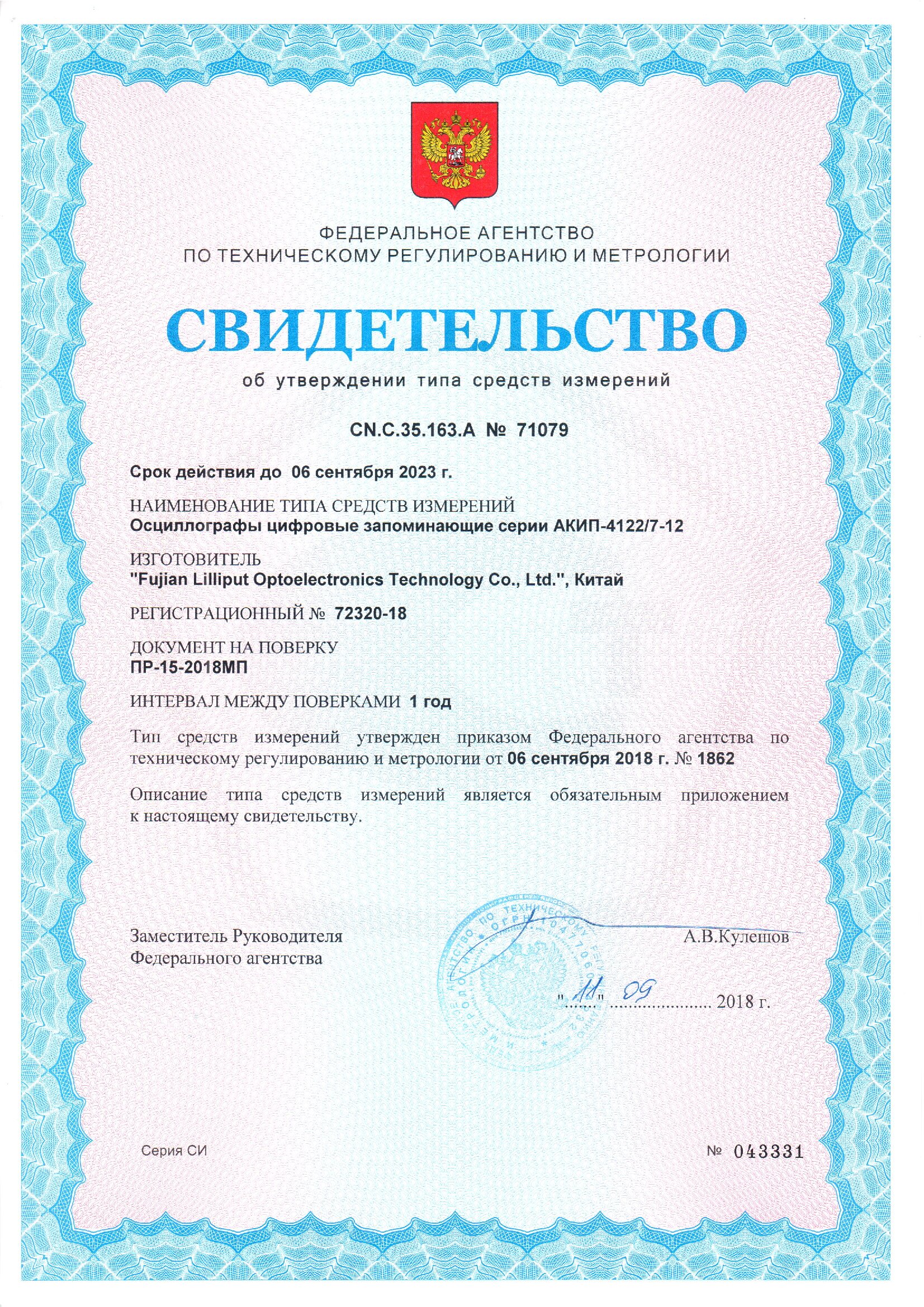 Межповерочный интервал 1 год