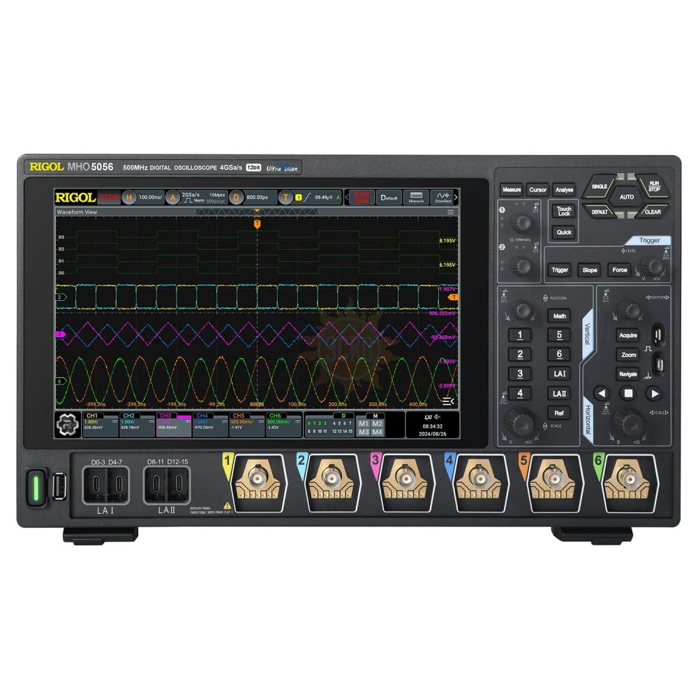 Цифровой осциллограф RIGOL MHO5056 – 6-ти канальный высокопроизводительный осциллограф высокого разрешения (12-бит) с полосой пропускания 500 МГц, выполненный в компактном корпусе, с возможностью работы от источника автономного питания. MHO5056 построен на технологической платформе «Centaurus», собственной разработки RIGOL.