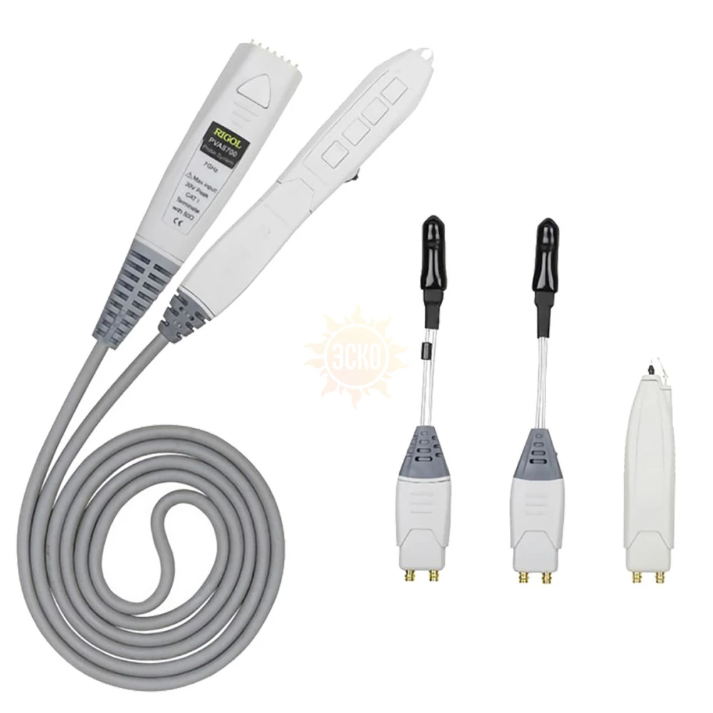 Активный дифференциальный/несимметричный высокочастотный низковольтный пробник RIGOL серий RIGOL PVA8350 представляет собой высокочастотный кабель со встроенным блоком СВЧ усилителя, подключаемыми сменными наконечниками (дифференциальный/несимметричный) с одной стороны и разъемом для соединения со входом осциллографа, с другой стороны.