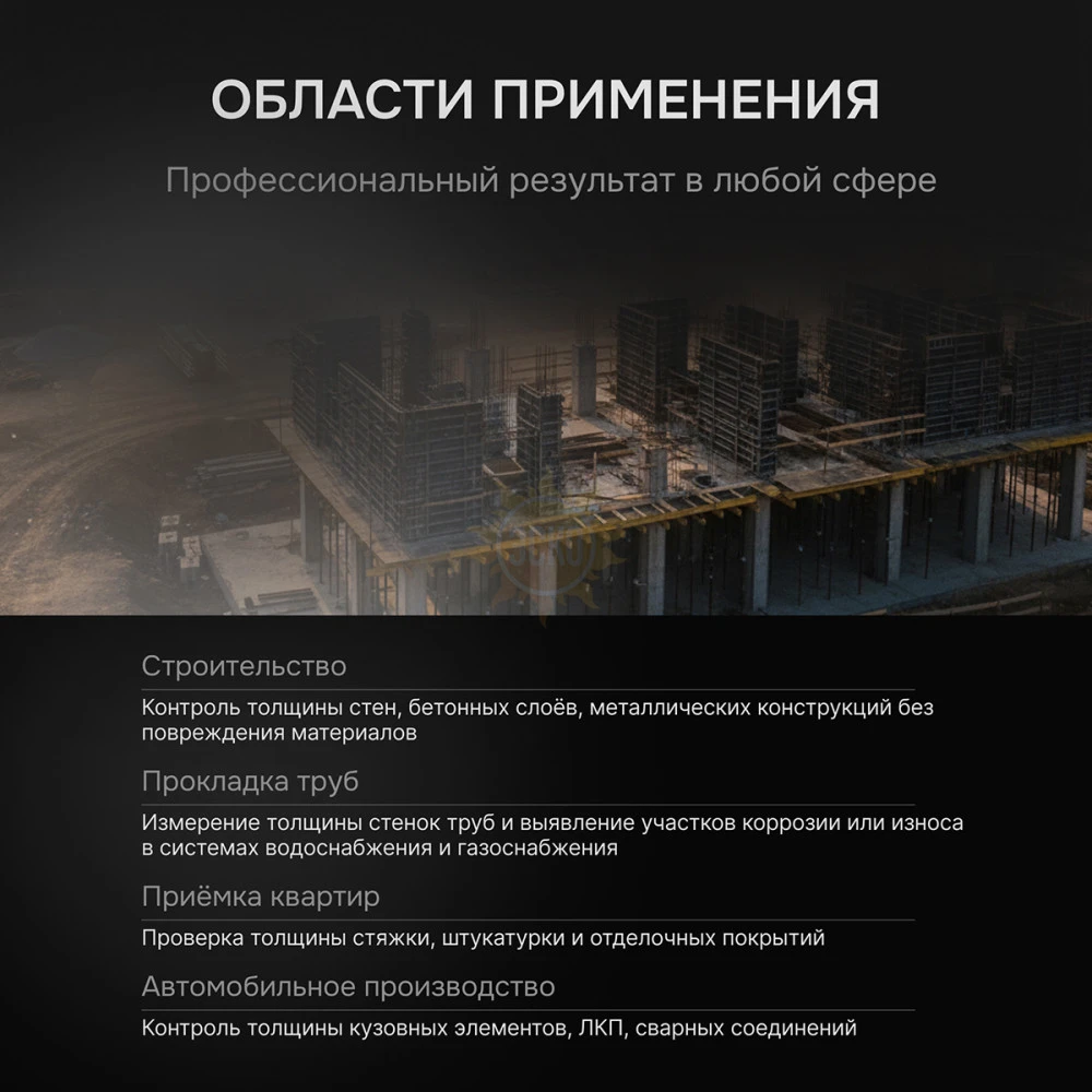 Толщиномер ультразвуковой RGK UTM-10 относится к мобильным инструментам, реализующим неразрушающий метод измерений, позволяя определять толщину целевых объектов в диапазоне от 1.00 до 300.00 мм, а также регистрировать скорость прохождения акустических колебаний, исследуя характеристики твердых материалов. Прибор может применяться как средство производственного контроля для проверки соответствия выпускаемых изделий требованиям конструкторской документации в разных промышленных сферах, а также в качестве диагностического инструмента, обеспечивая оперативную оценку текущего состояния конструкций и их критических элементов, с определением степени износа или разрушения вследствие коррозии.