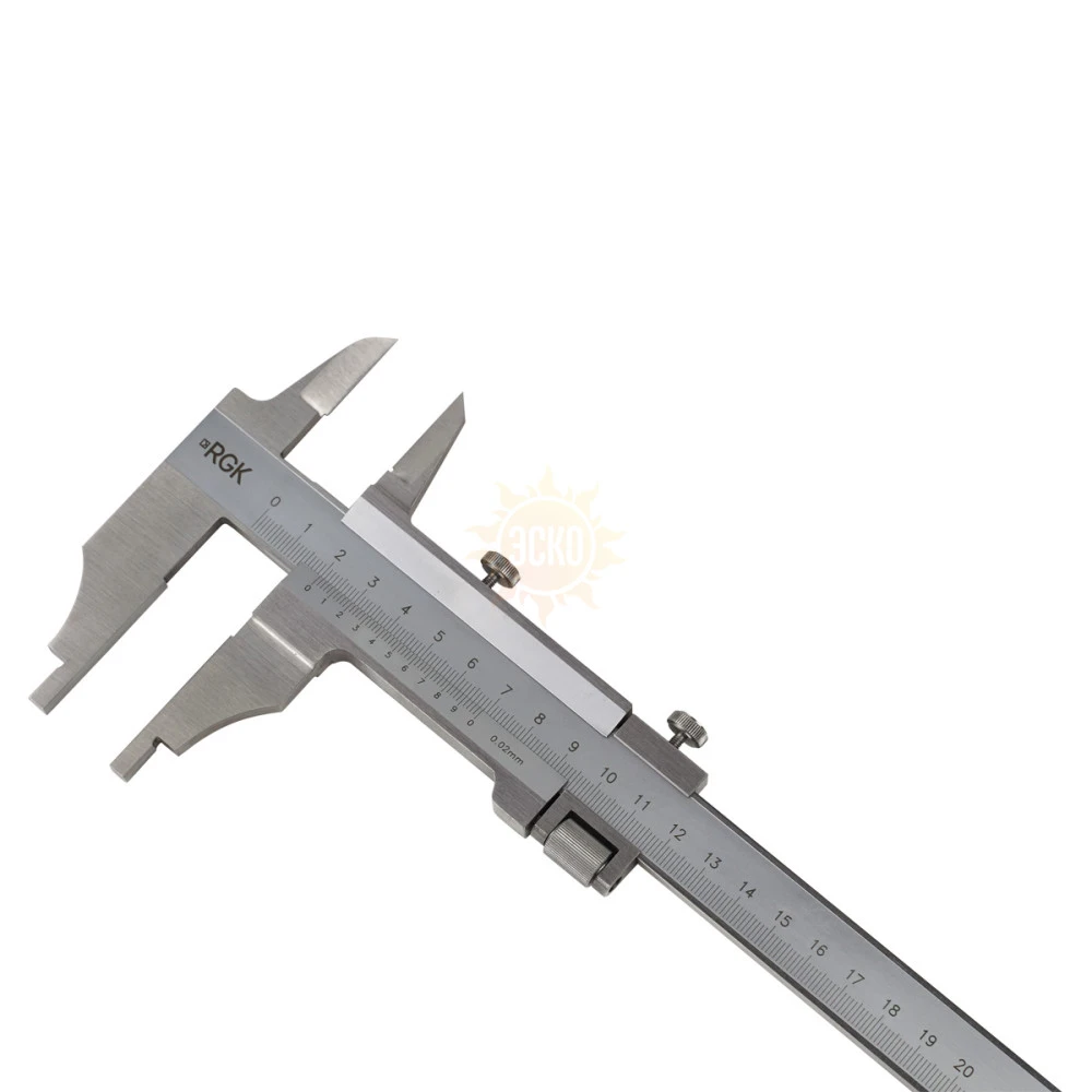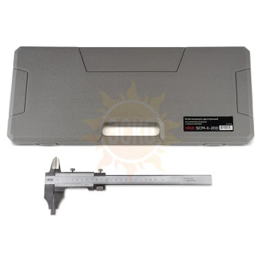 Штангенциркуль RGK SCM-II-200 представляет собой двусторонний механический измеритель линейных размеров с отсчетом по нониусу с рабочим диапазоном до 200 мм. Подобно вариантам типа II по ГОСТ 166, данная модель оборудуется губками для внешних и внутренних измерений, а также устройством тонкой установки рамки с микрометрической парой, что упрощает и ускоряет выполнение разметочных работ.