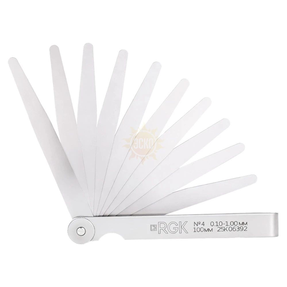 Набор щупов №4 (0,10-1,00) включает в себя шарнирно закрепленные в металлической рамочной обойме 10 плоских пластин из пружинной стали длиной 10 см, толщина которых увеличивается с шагом 0,1 мм от 0,10 до 1,00 мм. Данный инструмент служит для определения расстояний между сопряженными деталями и элементами конструкций по принципу "проходит - не проходит", позволяя оценивать соответствие зазоров и люфтов нормативным требованиям. Ручной инструмент может использоваться в качестве рабочего средства измерений специалистами при обработке материалов и сборке продукции на производственных и ремонтных предприятиях, в сервисных центрах, мастерских, монтажных организациях и т.п.