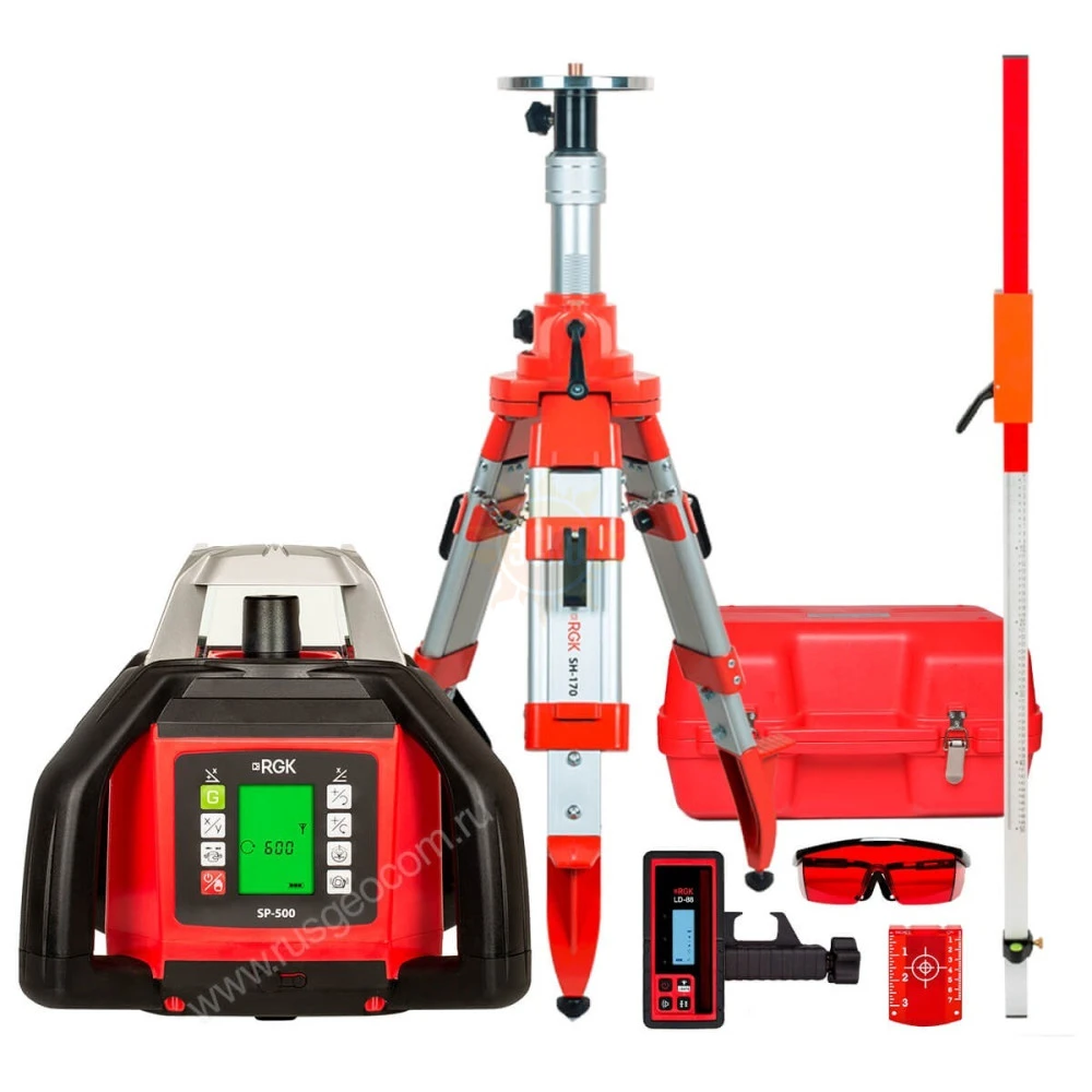 Характеристики Комплект: ротационный нивелир RGK SP-500 с калибровкой + штатив RGK SH-170 рейка RGK LR-2