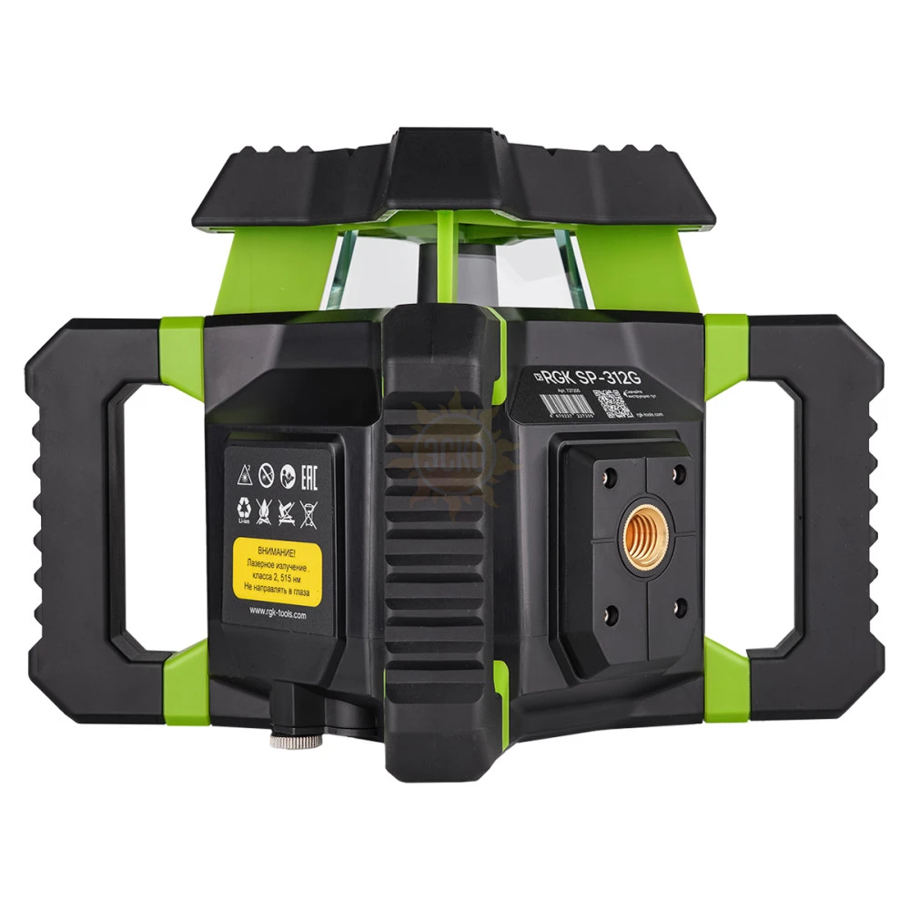 Рассчитанный на использование в жестких условиях строительной площадки, ротационный лазерный нивелир RGK SP-312G соответствует категории пыле- и влагозащиты IP65. Конструкция изделия, с дополнительной усиленной накладкой над излучающей системой, снабженной ребрами жесткости, и ручками, выполняющими роль дополнительных бамперов, минимизирует риск повреждения механизма из-за случайных ударов, падений и прочих физических воздействий. Проецирующий прибор способен функционировать в любое время года, сохраняя работоспособность в диапазоне температур от –20 до +50°C.