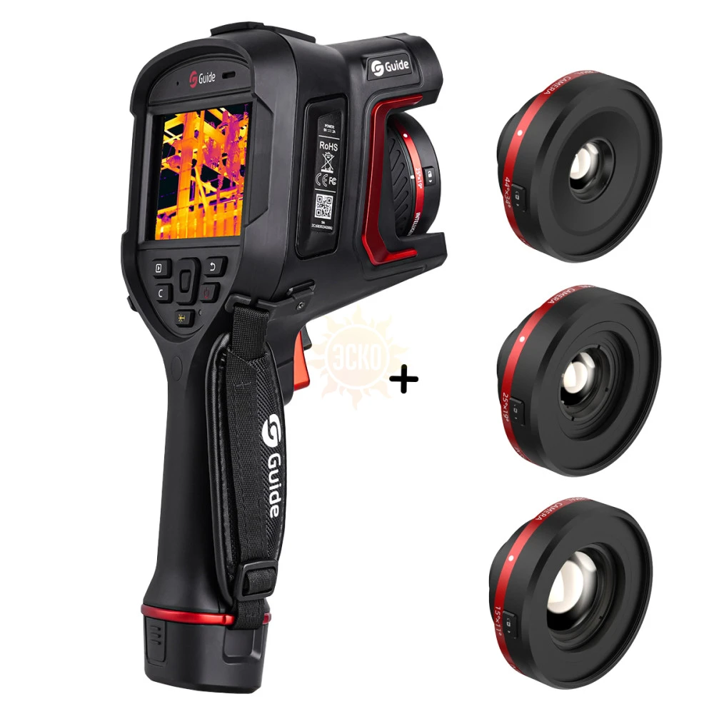 Тепловизор Guide H3 с поверкой в комплекте с широкоугольным 44° x 34° высокотемпературным и телеобъективом 15° x 11°