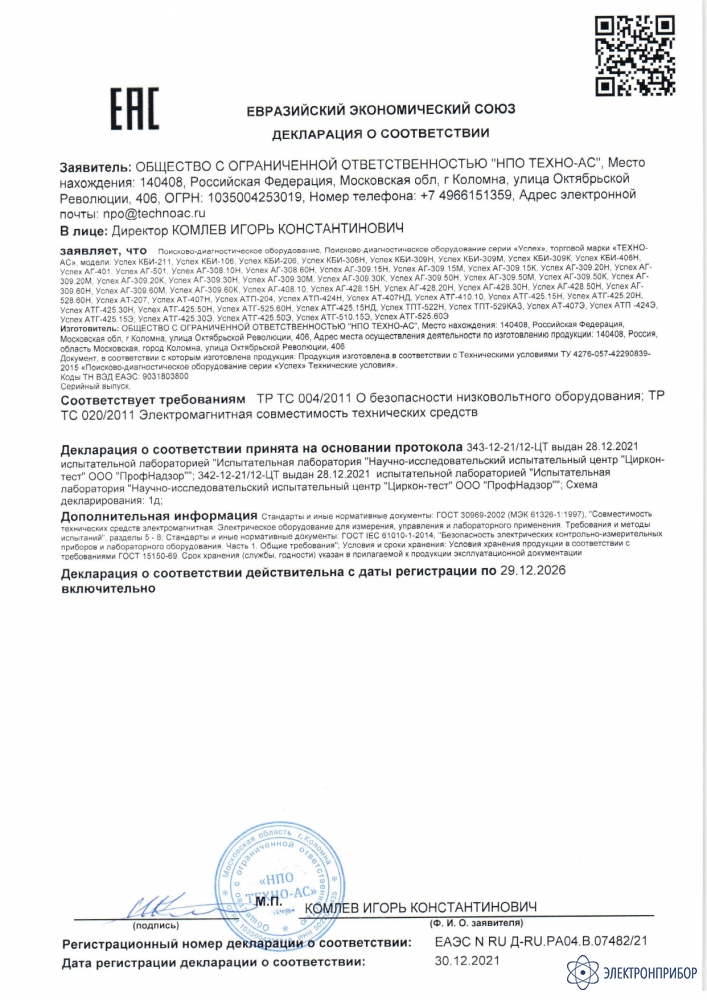 Дополнительная комплектация Успех АТ-407Н — течеискатель