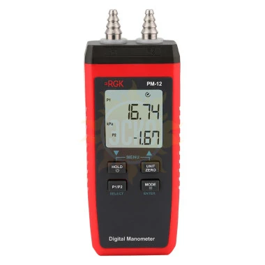 Цифровой манометр RGK PM-12 - двухканальный прибор для измерения манометрического и дифференциального давления, который часто используется при настройке и пусконаладке систем вентиляции, отопления и любых других, где есть движение воздушных масс.