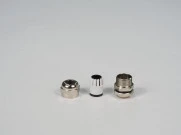 резьба: M90 x 2 x 20.; каб. d: 77~67 мм; приб. отв. d:90 мм; цанга: разъемная, материал никелированная латунь