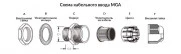 резьба: M40 x 1.5 x 20; каб. d: 25~20 мм; приб. отв. d: 40 мм; цанга: разъемная